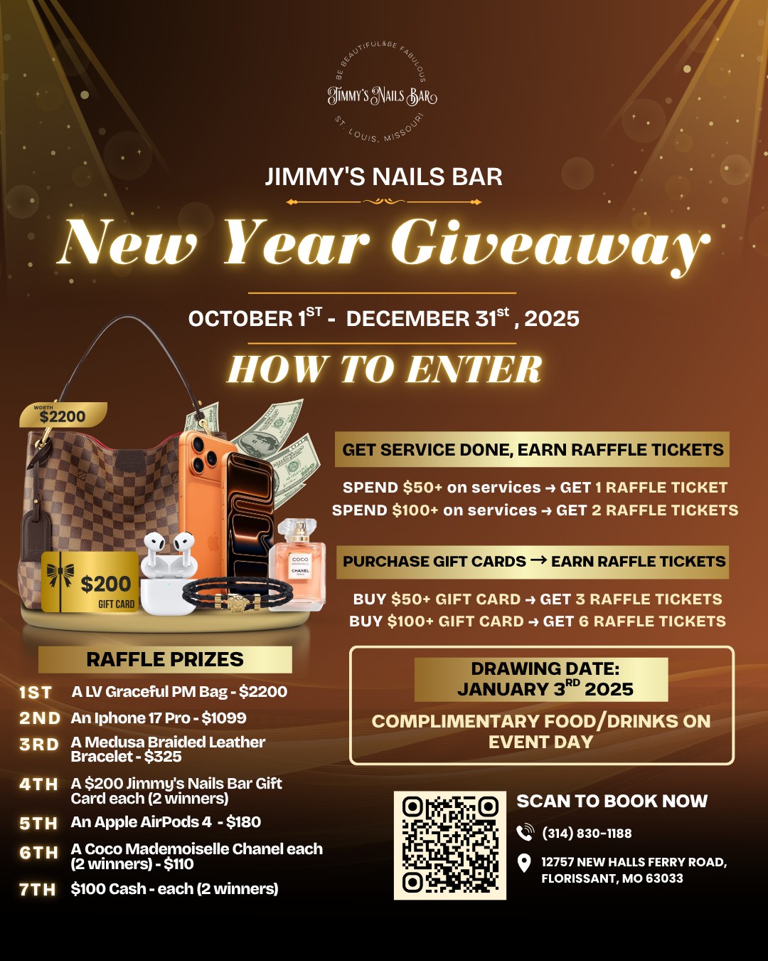 - Must follow Jimmy’s Nails Bar (Facebook) & @jimmynailsstl (Instagram) to qualify.